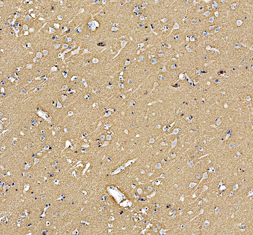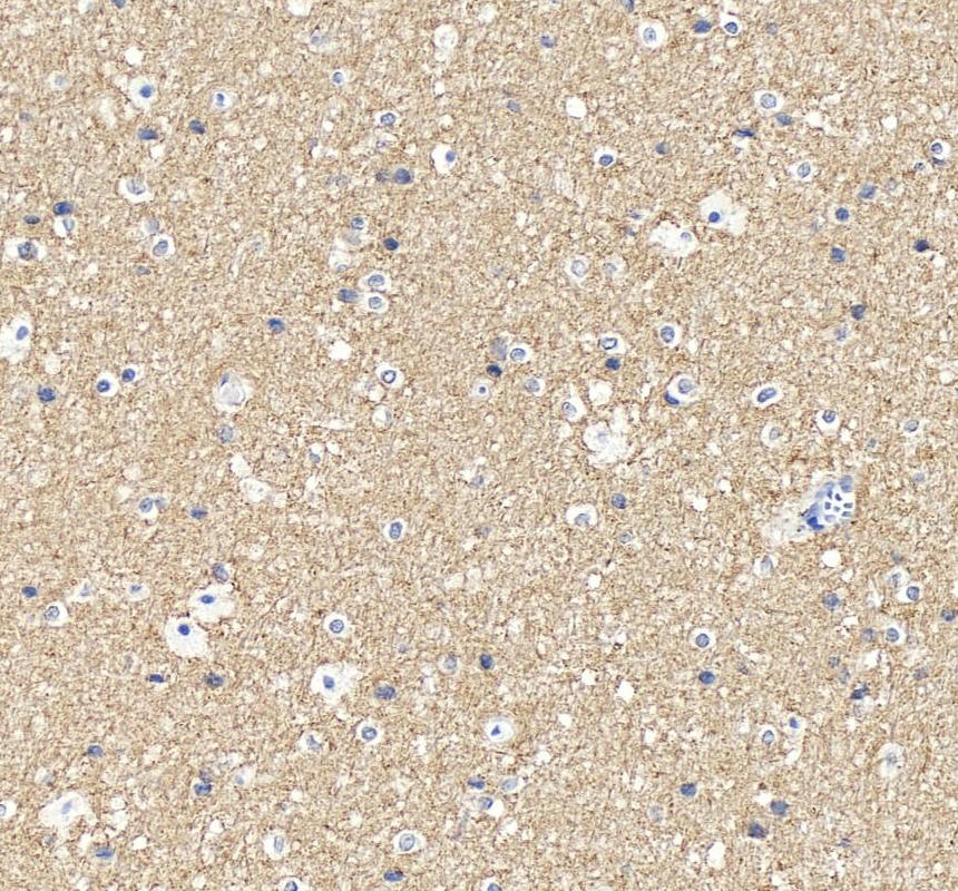SNAP25 was detected in a paraffin-embedded section of human brain tissue. The tissue section was incubated with rabbit anti-SNAP25 Antibody (A01625) at a dilution of 1:200 and developed using HRP Conjugated Rabbit IgG Super Vision Assay Kit (Catalog # SV0002) with DAB (Catalog # AR1027) as the chromogen.