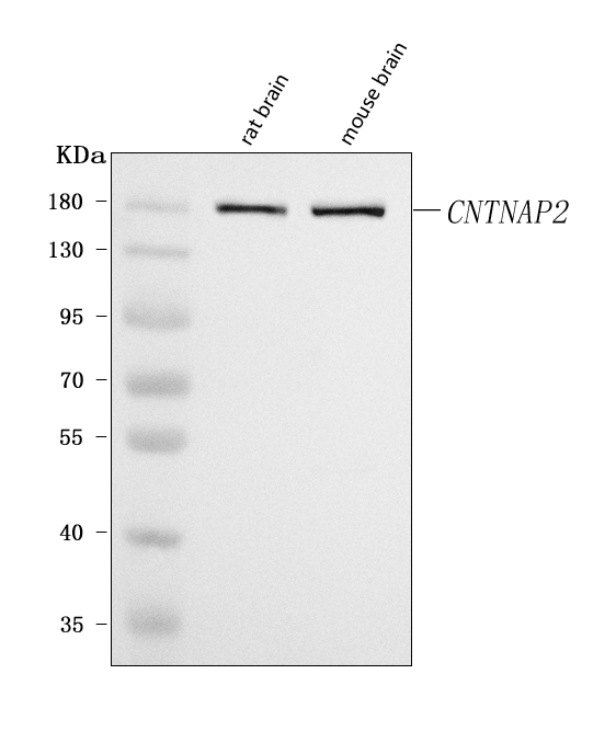After electrophoresis, proteins were transferred to a membrane. Then the membrane was incubated with rabbit anti-Caspr2/CNTNAP2 antigen affinity purified polyclonal antibody (A02819-2) and probed with a goat anti-rabbit IgG-HRP secondary antibody (Catalog # BA1054). The signal is developed using ECL Plus Western Blotting Substrate (Catalog # AR1197). A specific band was detected for Caspr2/CNTNAP2 at approximately 170 kDa. The expected band size for Caspr2/CNTNAP2 is at 170 kDa.