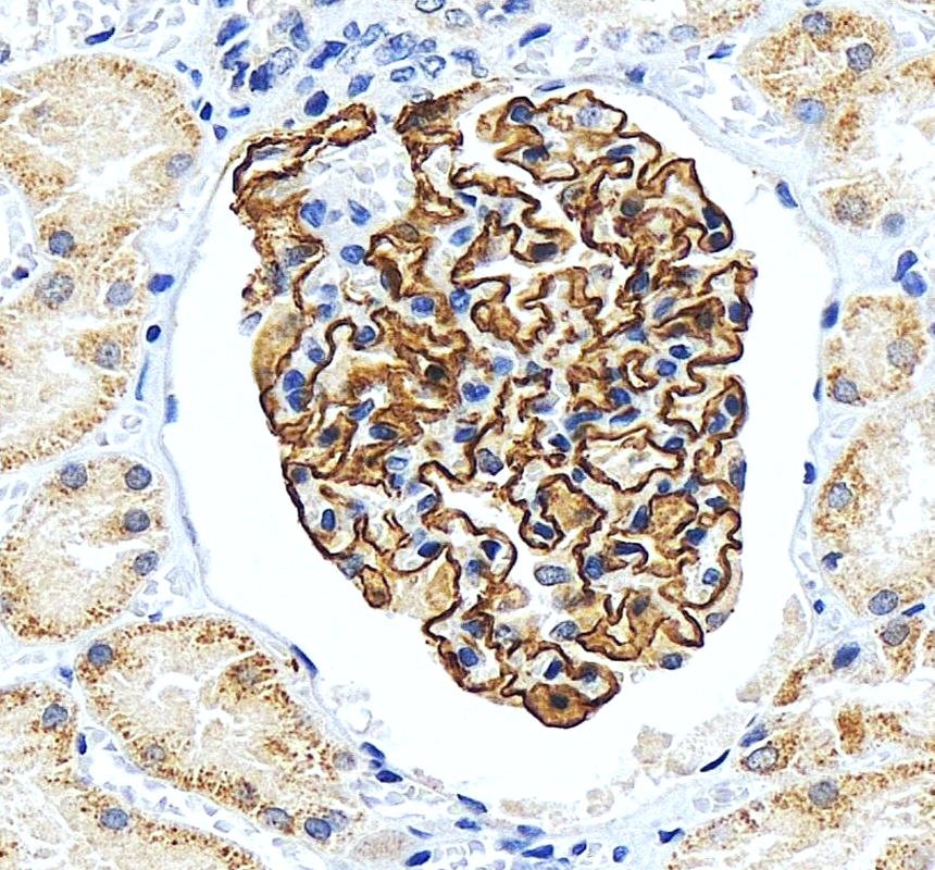 IHC analysis of Nephrin/NPHS1 using anti-Nephrin/NPHS1 antibody (BA1669).