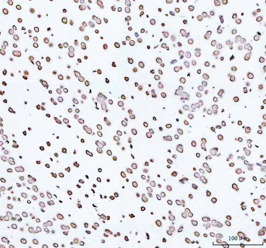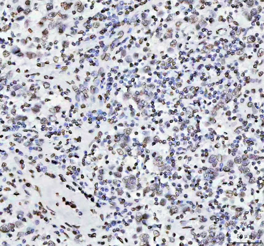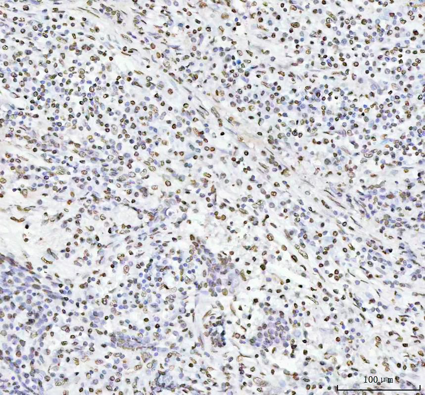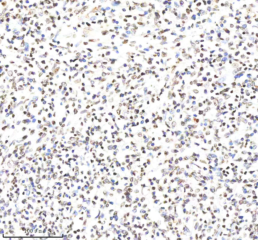Histone H4 was detected in a paraffin-embedded section of human B-cell lymphoma tissue. The tissue section was incubated with rabbit anti-Histone H4 Antibody (BM4713) at a dilution of 1:200 and developed using HRP Conjugated Rabbit IgG Super Vision Assay Kit (Catalog # SV0002) with DAB (Catalog # AR1027) as the chromogen.