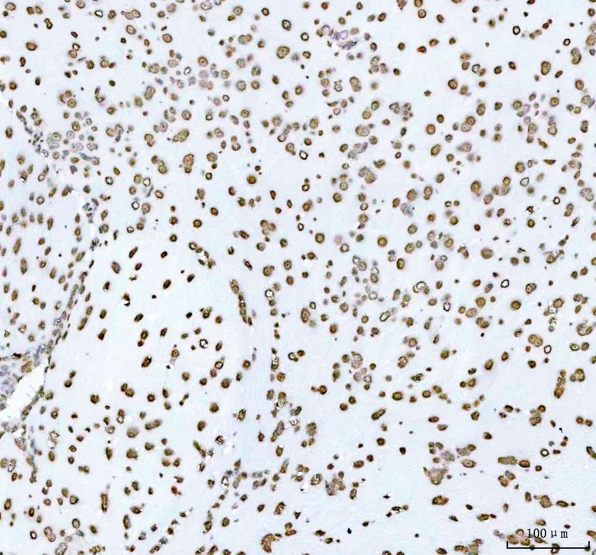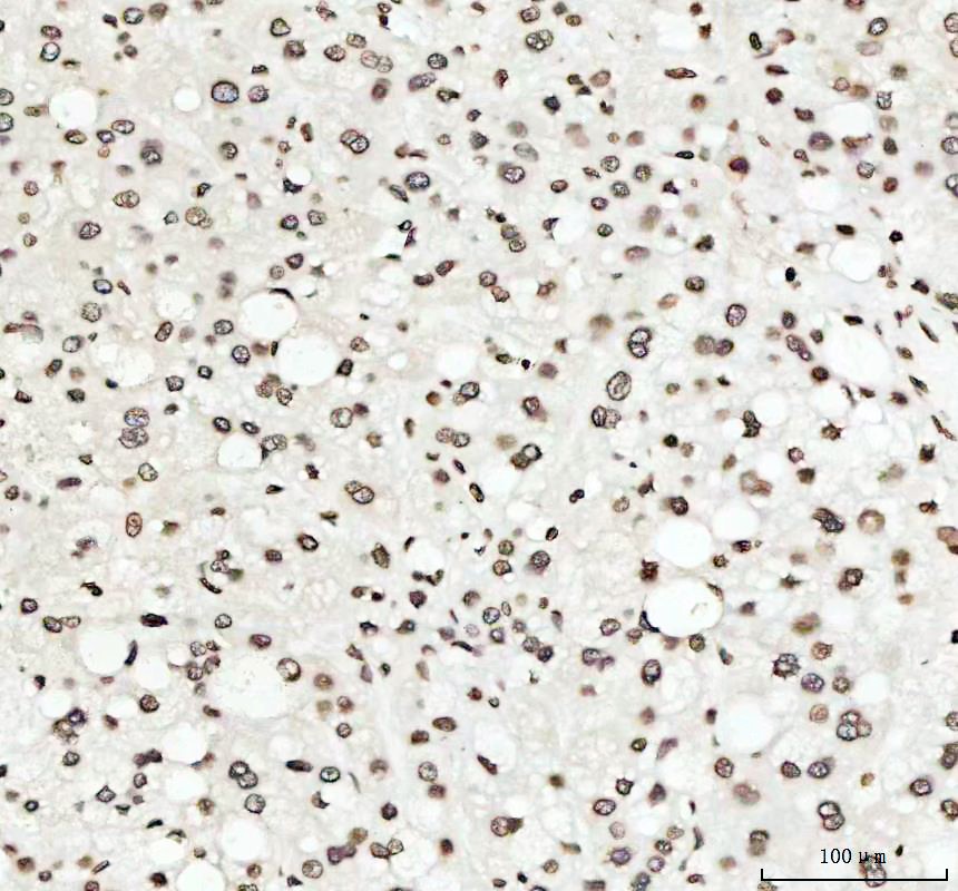 Histone H4 was detected in a paraffin-embedded section of human testicular germ cell tumors tissue. The tissue section was incubated with rabbit anti-Histone H4 Antibody (BM4713) at a dilution of 1:200 and developed using HRP Conjugated Rabbit IgG Super Vision Assay Kit (Catalog # SV0002) with DAB (Catalog # AR1027) as the chromogen.