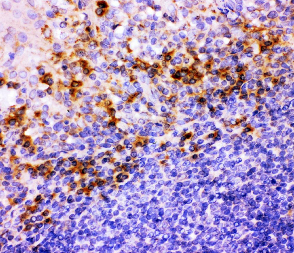 | (Boiling the paraffin sections in 10mM citrate buffer,pH6.0,or PH8.0 EDTA repair liquid for 20 mins is required for the staining of formalin/paraffin sections.) Optimal working dilutions must be determined by end user. | |