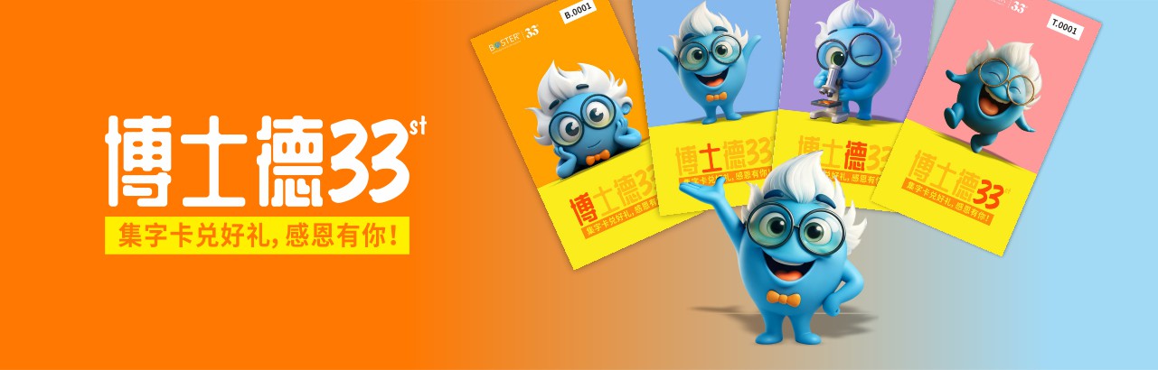 活动时间:2026.1.1-12.31,凡订购博士德ELISA或一抗的用户,即可参与集字卡兑好礼,最高可获得666元京东卡。 1.集“博士德33”任意2张字卡(字可重复),可兑换二抗产品(8选1)或美度防晒伞; 2.集“博士德33”任意3张字卡(字可重复),可兑换特超敏ECL发光液(AR1197)或128元JD卡。 3.集“博士德33”4张字卡(字不可重复),可兑换官网价1280元以内的现货一抗产品或666元JD卡。