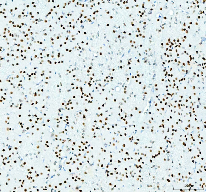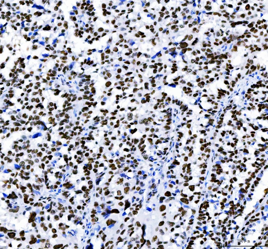 | (Boiling the paraffin sections in 10mM citrate buffer,pH6.0,or PH8.0 EDTA repair liquid for 20 mins is required for the staining of formalin/paraffin sections.) Optimal working dilutions must be determined by end user. | |