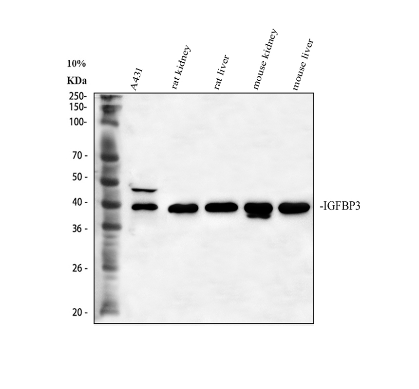 Western blot analysis of IGFBP3 using anti-IGFBP3 antibody (A00435-2).