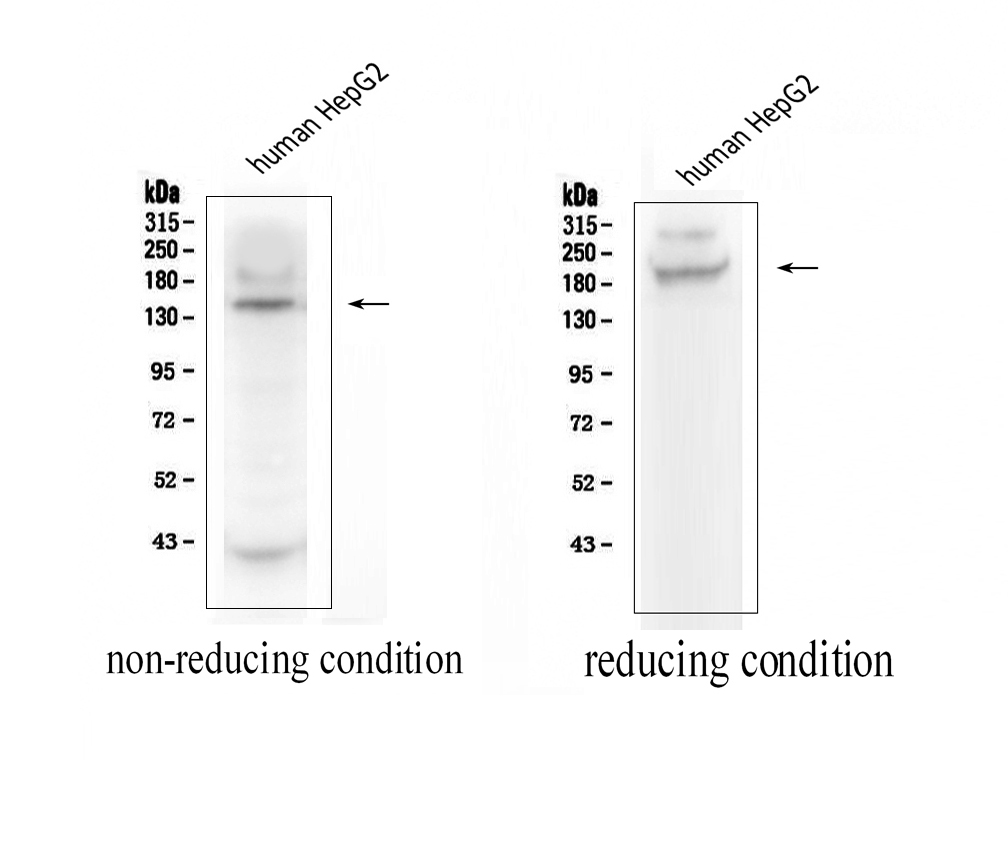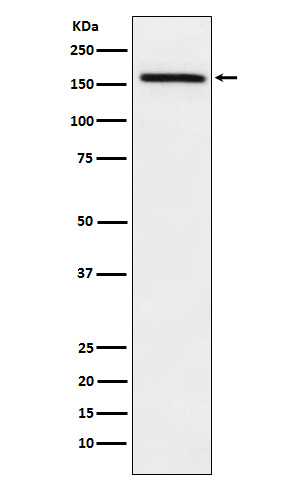 After electrophoresis, proteins were transferred to a membrane. Then the membrane was incubated with rabbit anti-ADAMTS13 antigen affinity purified polyclonal antibody (A00586-1) at a dilution of 1:1000 and probed with a goat anti-rabbit IgG-HRP secondary antibody (Catalog # BA1054). The signal is developed using ECL Plus Western Blotting Substrate (Catalog # AR1197). A specific band was detected for ADAMTS13 at approximately 154 kDa. The expected band size for ADAMTS13 is at 154 kDa.