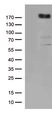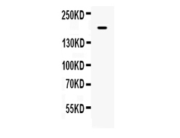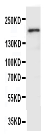 After electrophoresis, proteins were transferred to a membrane. Then the membrane was incubated with rabbit anti-VEGFR2/KDR antigen affinity purified polyclonal antibody (A00901-3) at a dilution of 1:1000 and probed with a goat anti-rabbit IgG-HRP secondary antibody (Catalog # BA1054). The signal is developed using ECL Plus Western Blotting Substrate (Catalog # AR1197). A specific band was detected for VEGFR2/KDR at approximately 180-250 kDa.