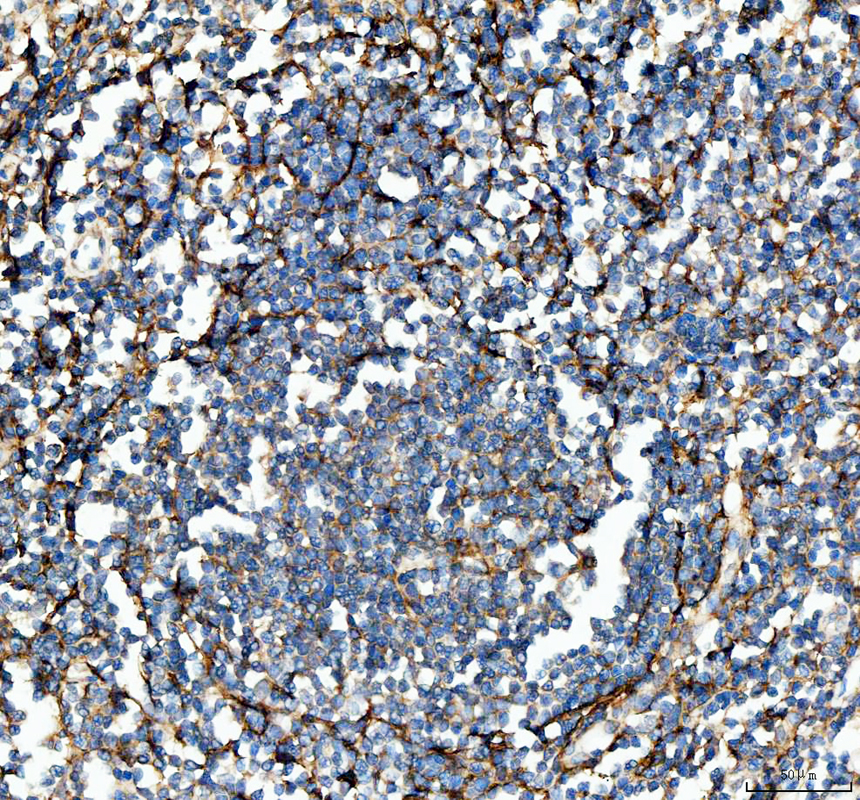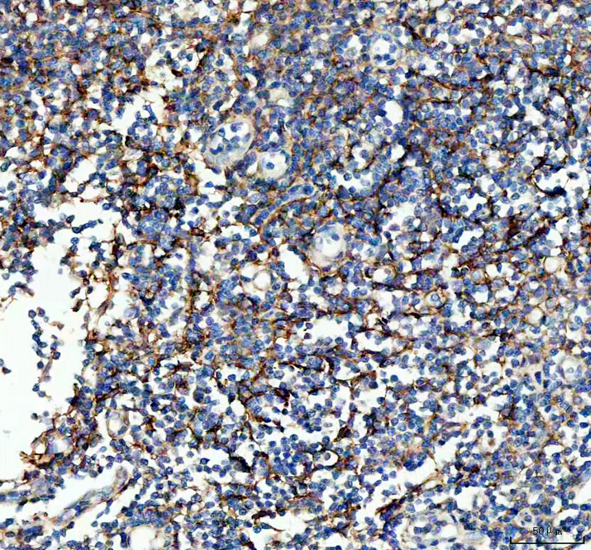 VCAM1 was detected in a paraffin-embedded section of human tonsil tissue. The tissue section was incubated with rabbit anti-VCAM1 Antibody (A01199-1) at a dilution of 1:200 and developed using HRP Conjugated Rabbit IgG Super Vision Assay Kit (Catalog # SV0002) with DAB (Catalog # AR1027) as the chromogen.