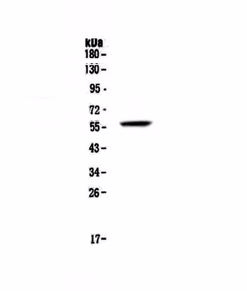 After electrophoresis, proteins were transferred to a membrane. Then the membrane was incubated with rabbit anti-FGR antigen affinity purified polyclonal antibody (A01674-1) at a dilution of 1:1000 and probed with a goat anti-rabbit IgG-HRP secondary antibody (Catalog # BA1054). The signal is developed using ECL Plus Western Blotting Substrate (Catalog # AR1197). A specific band was detected for FGR at approximately 59 kDa. The expected band size for FGR is at 59 kDa