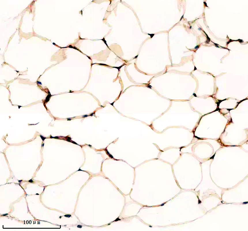 PNPLA2 was detected in a paraffin-embedded section of mouse adipose tissue. The tissue section was incubated with rabbit anti-PNPLA2 Antibody (A01800-1) at a dilution of 1:200 and developed using HRP Conjugated Rabbit IgG Super Vision Assay Kit (Catalog # SV0002) with DAB (Catalog # AR1027) as the chromogen.
