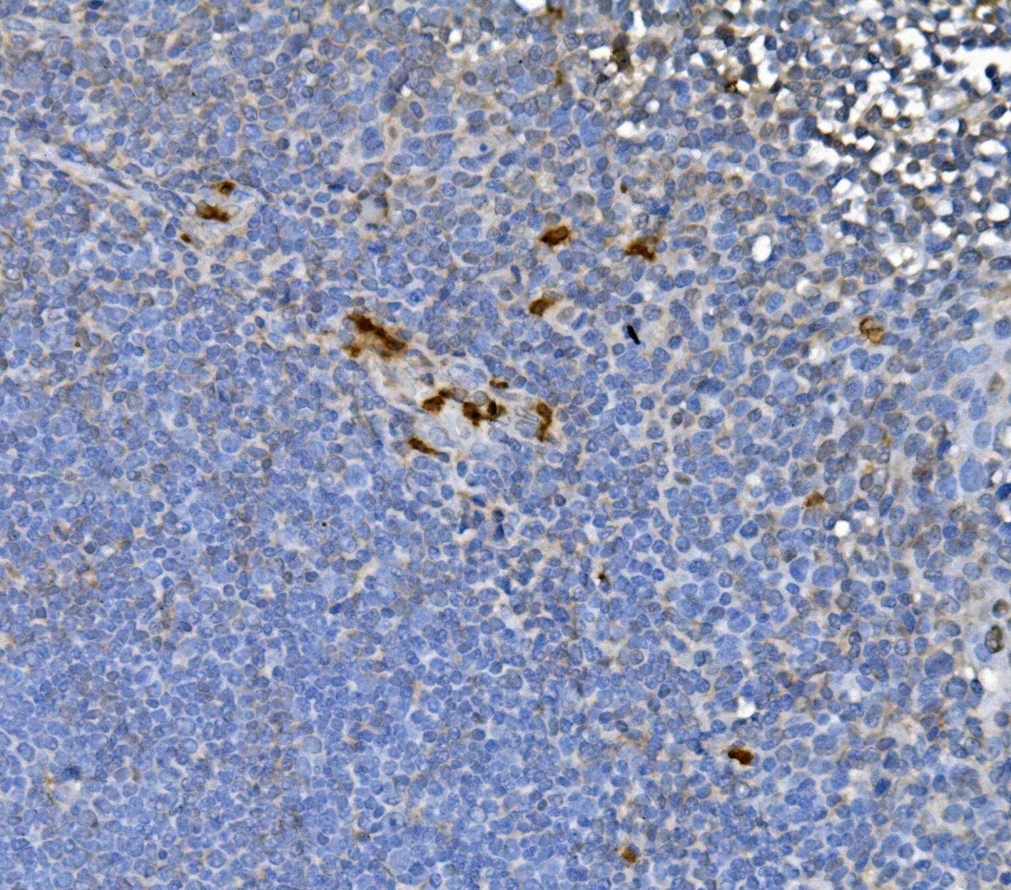 JUNB was detected in a paraffin-embedded section of human tonsil tissue. Biotinylated goat anti-rabbit IgG was used as secondary antibody. The tissue section was incubated with rabbit anti-JUNB Antibody (A01825-2) at a dilution of 1:200 and developed using Strepavidin-Biotin-Complex (SABC) (Catalog # SA1022) with DAB (Catalog # AR1027) as the chromogen.