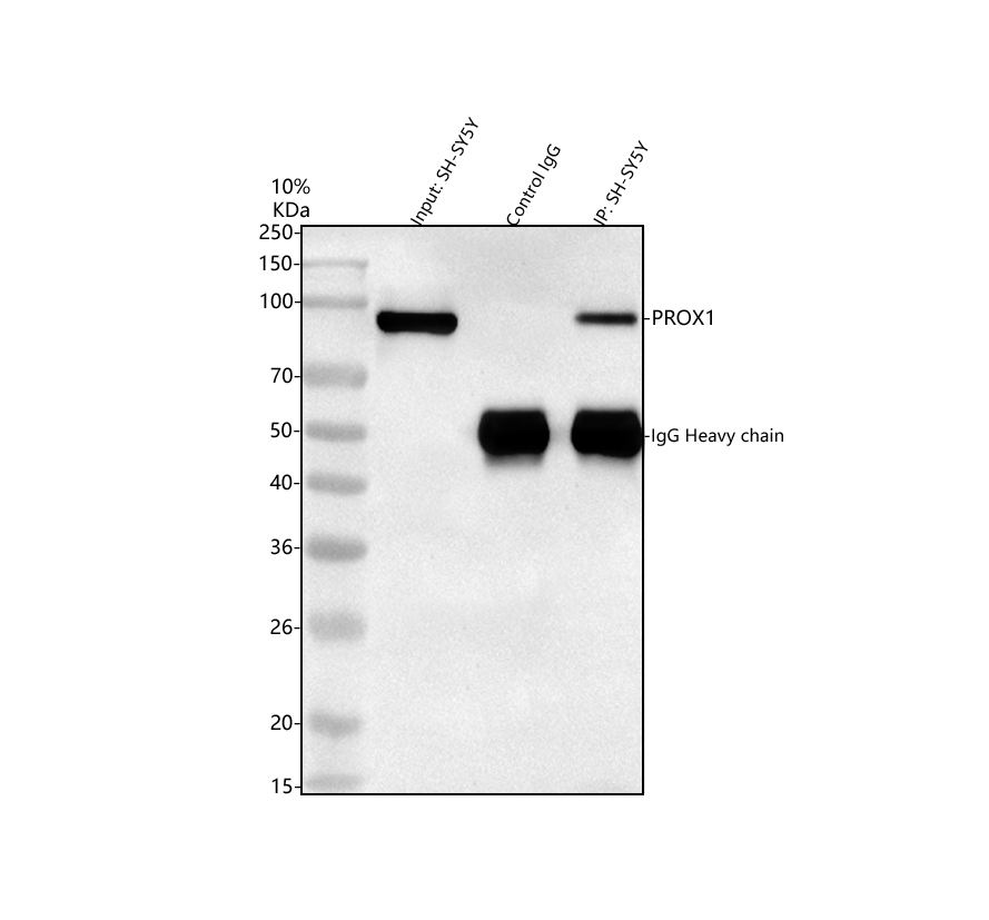 IP analysis of PROX1 using anti-PROX1 antibody (A01985-1) in SH-SY5Y whole cell lysate.
