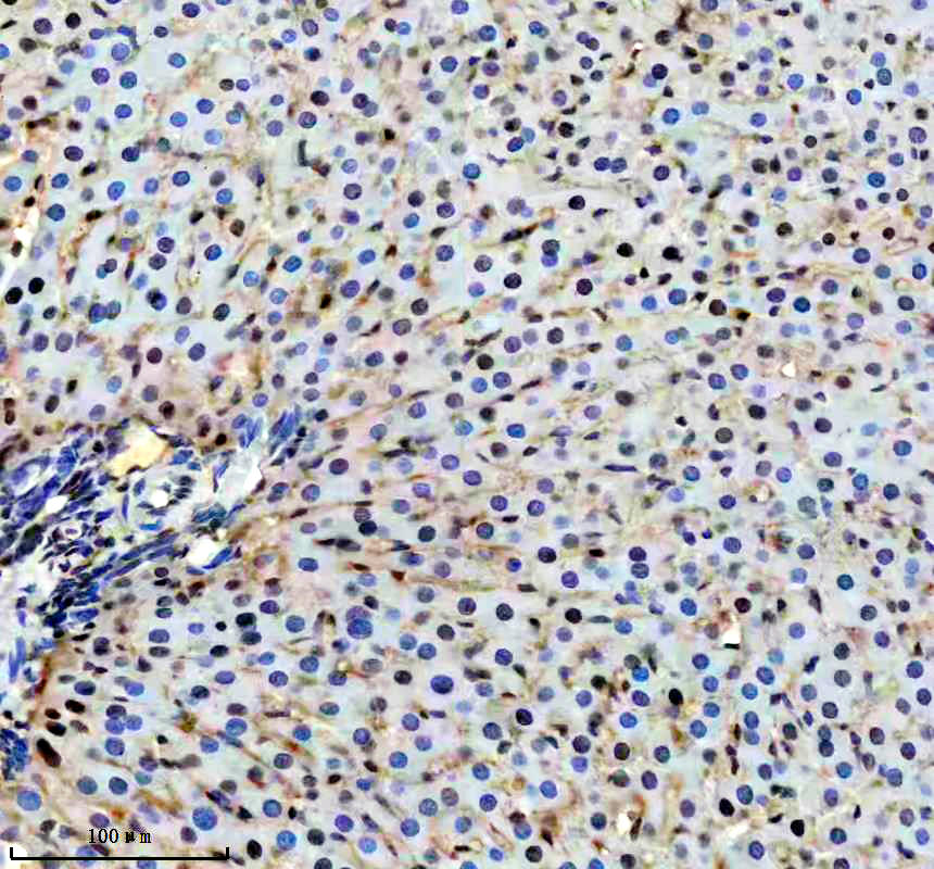 | (Boiling the paraffin sections in 10mM citrate buffer,pH6.0,or PH8.0 EDTA repair liquid for 20 mins is required for the staining of formalin/paraffin sections.) Optimal working dilutions must be determined by end user. | |