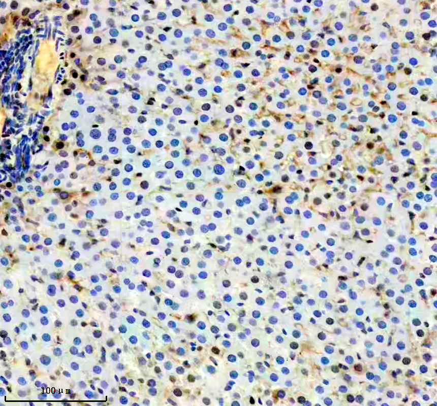 FKBP5 was detected in a paraffin-embedded section of mouse liver tissue. The tissue section was incubated with rabbit anti-FKBP5 Antibody (A04182-2) at a dilution of 1:200 and developed using HRP Conjugated Rabbit IgG Super Vision Assay Kit (Catalog # SV0002) with DAB (Catalog # AR1027) as the chromogen.