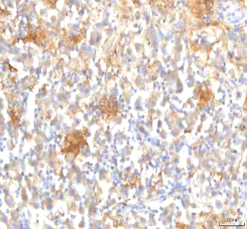 MFSD12 was detected in a paraffin-embedded section of human testicular seminoma tissue. The tissue section was developed using HRP Conjugated Rabbit IgG Super Vision Assay Kit (Catalog # SV0002) with DAB (Catalog # AR1027) as the chromogen.