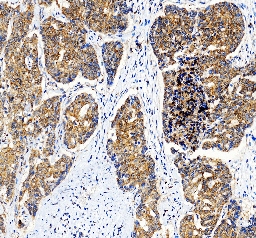 | (Boiling the paraffin sections in 10mM citrate buffer,pH6.0,or PH8.0 EDTA repair liquid for 20 mins is required for the staining of formalin/paraffin sections.) Optimal working dilutions must be determined by end user. | |