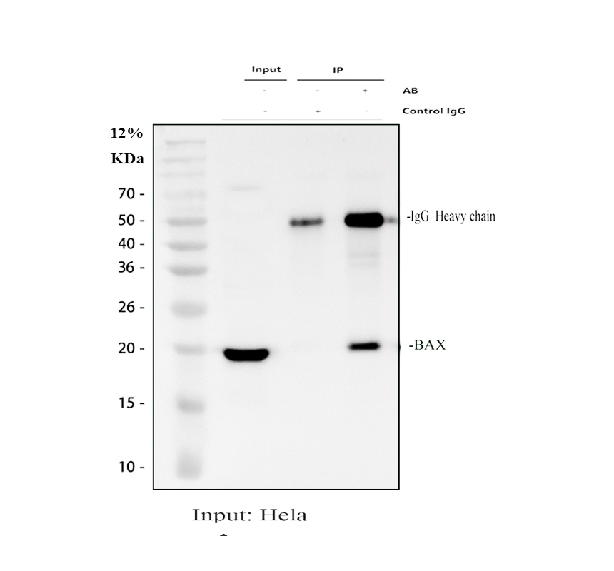 Lane 3: anti- BAX antibody (2μg) + Hela whole cell lysate (500μg).