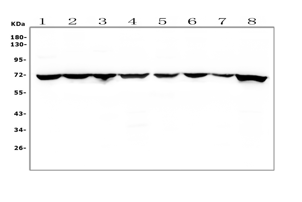 Lane 8: mouse RAW264.7 whole cell lysates.