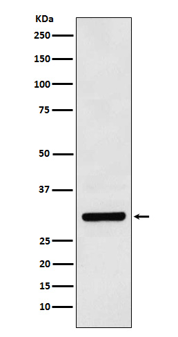 After electrophoresis, proteins were transferred to a membrane. Then the membrane was incubated with rabbit anti-BCL10 antigen affinity purified polyclonal antibody (BA2809-2) at a dilution of 1:1000 and probed with a goat anti-rabbit IgG-HRP secondary antibody (Catalog # BA1054). The signal is developed using ECL Plus Western Blotting Substrate (Catalog # AR1197). A specific band was detected for BCL10 at approximately 26 kDa. The expected band size for BCL10 is at 26 kDa.