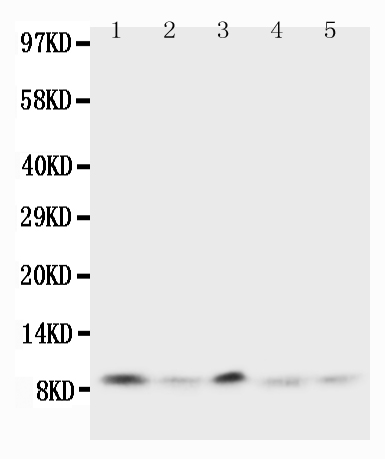 After electrophoresis, proteins were transferred to a membrane. Then the membrane was incubated with rabbit anti-Ubiquitin/UBB antigen affinity purified polyclonal antibody (BA3363-2) at a dilution of 1:1000 and probed with a goat anti-rabbit IgG-HRP secondary antibody (Catalog # BA1054). The signal is developed using ECL Plus Western Blotting Substrate (Catalog # AR1197). A specific band was detected for Ubiquitin/UBB at approximately 9,26 kDa. The expected band size for Ubiquitin/UBB is at 26 kDa.