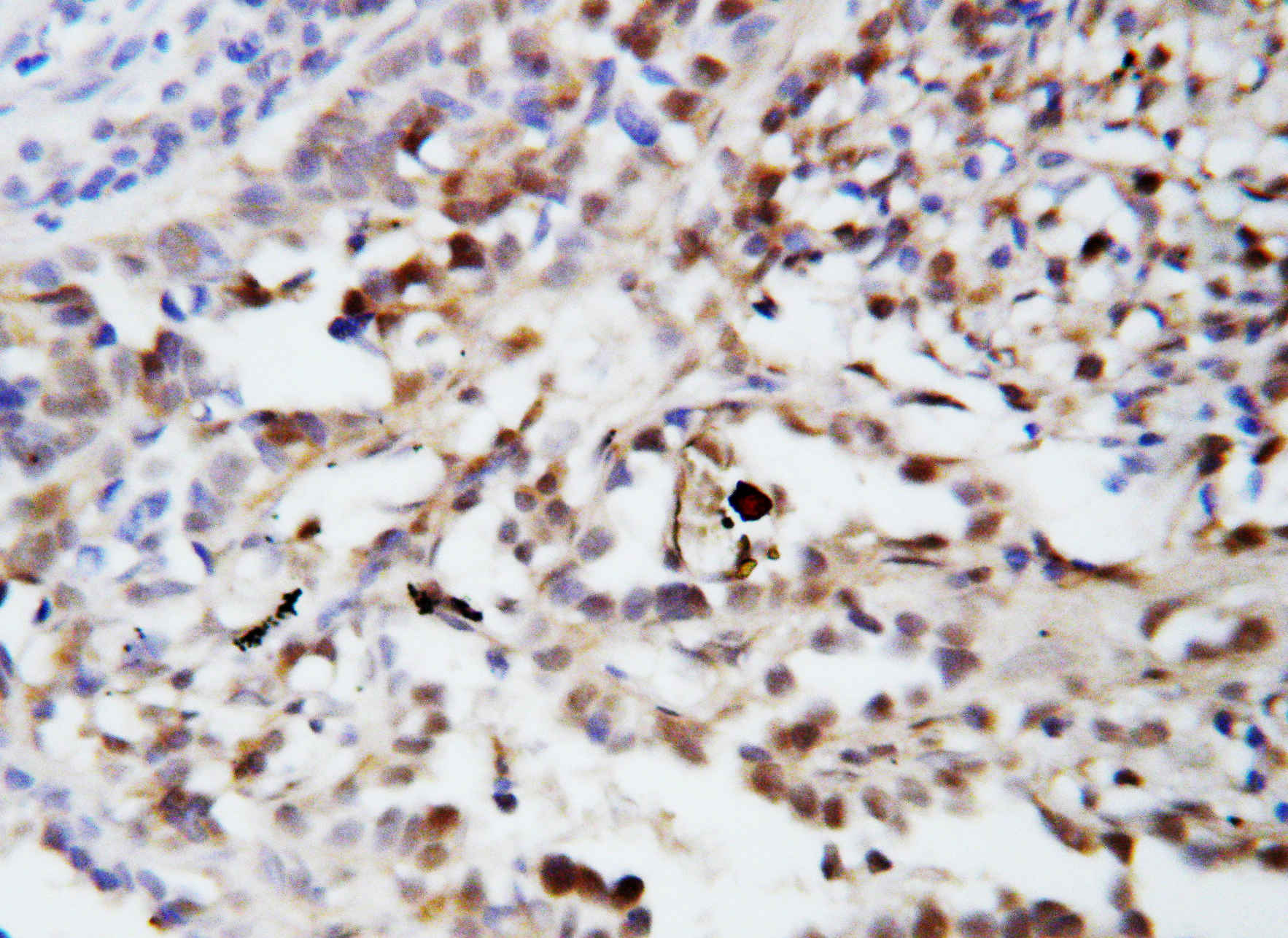 Ubiquitin/UBB was detected in a paraffin-embedded section of human lung cancer tissue. The tissue section was incubated with rabbit anti-Ubiquitin/UBB Antibody (BA3363-2) at a dilution of 1:200 and developed using HRP Conjugated Rabbit IgG Super Vision Assay Kit (Catalog # SV0002) with DAB (Catalog # AR1027) as the chromogen.
