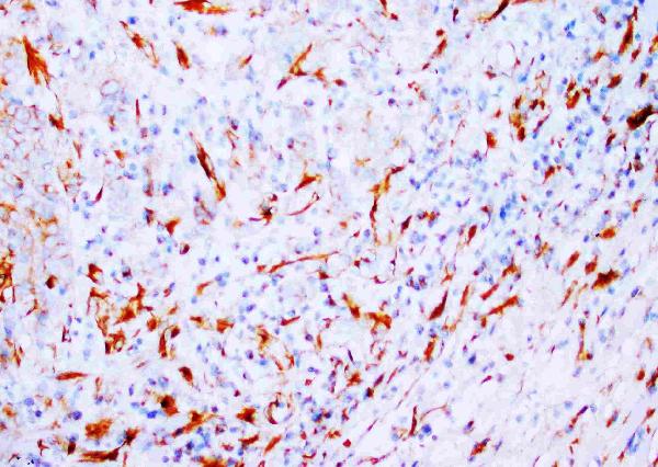 | (Boiling the paraffin sections in 10mM citrate buffer,pH6.0,or PH8.0 EDTA repair liquid for 20 mins is required for the staining of formalin/paraffin sections.) Optimal working dilutions must be determined by end user. | |