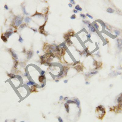 After electrophoresis, proteins were transferred to a membrane. Then the membrane was incubated with rabbit anti-Ferritin antigen affinity purified monoclonal antibody (BM4487) at a dilution of 1:1000 and probed with a goat anti-rabbit IgG-HRP secondary antibody (Catalog # BA1054). The signal is developed using ECL Plus Western Blotting Substrate (Catalog # AR1197). A specific band was detected for Ferritin at approximately 19 kDa. The expected band size for Ferritin is at 21 kDa.