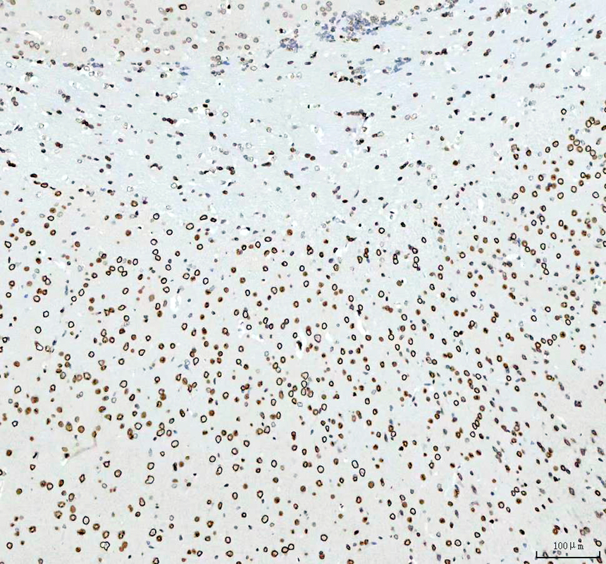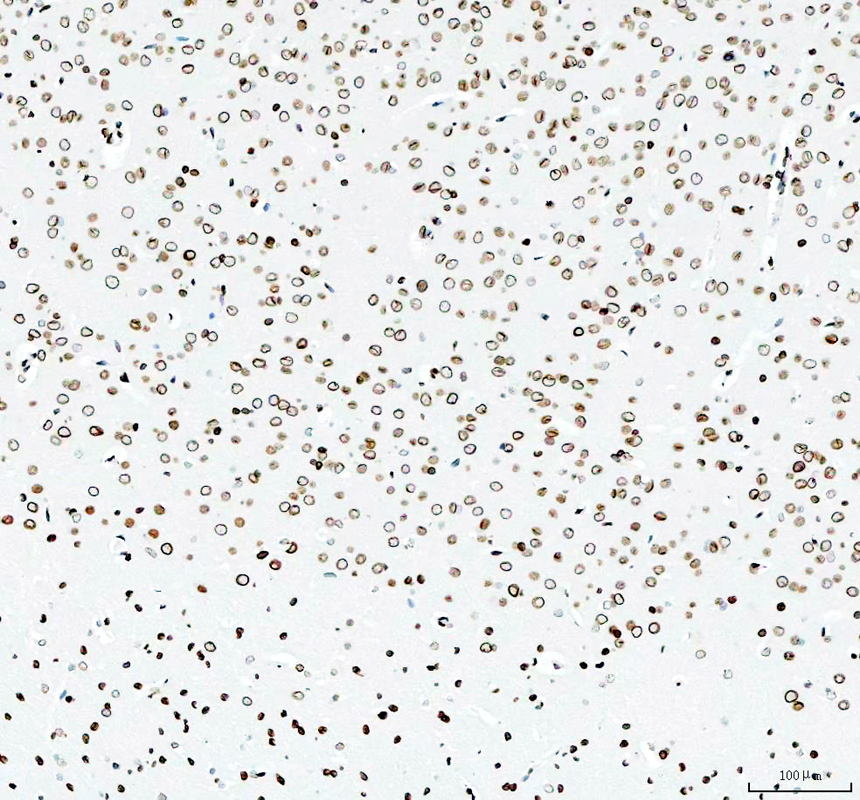 E2F1 was detected in a paraffin-embedded section of mouse brain tissue. The tissue section was incubated with rabbit anti-E2F1 Antibody (BM4848) at a dilution of 1:200 and developed using HRP Conjugated Rabbit IgG Super Vision Assay Kit (Catalog # SV0002) with DAB (Catalog # AR1027) as the chromogen.