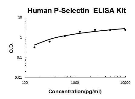 P-selectin, also called GMP-140, CD62, or selectin P, is a 140-kD adhesion molecule, expressed at the surface of activated cells, that mediates the interaction of activated endothelial cells or platelets with leukocytes. It is stored in secretory granules and expressed at the plasma membrane after cell activation. It is known to play an important role in atherosclerosis. The major ligand for P-selectin on leukocytes is P-selectin glycoprotein ligand-1(PSGL-1). The standard product used in this kit is recombinant human P-Selectin, excluding intercellular P-Selectin and transmembrane domain. It has 730 amino acids sequence with the molecular mass of 80 KDa.