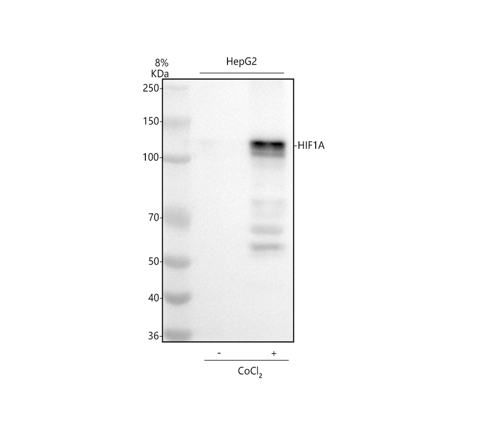Western blot analysis of anti-HIF-1 alpha/HIF1A antibody (M00013-4). The sample well of each lane was loaded with 30 ug of sample under reducing conditions.