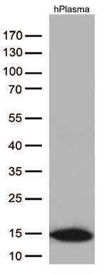 Western blot analysis of extracts (35ug) from human plasma by using anti-CST3 monoclonal antibody (1:500).