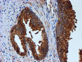 Immunohistochemical staining of paraffin-embedded Human prostate tissue within the normal limits using anti-CST3 mouse monoclonal antibody. (Heat-induced epitope retrieval by 10mM citric buffer, pH6.0, 100°C for 10min, M00961-2) (1:150)