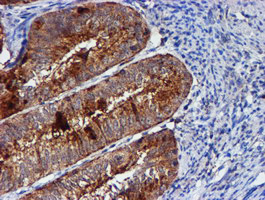 Immunohistochemical staining of paraffin-embedded Adenocarcinoma of Human endometrium tissue using anti-CST3 mouse monoclonal antibody. (Heat-induced epitope retrieval by 10mM citric buffer, pH6.0, 100°C for 10min, M00961-2) (1:150)