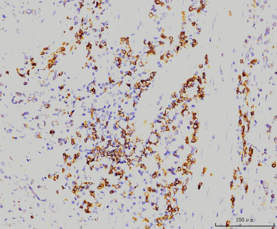 | (Boiling the paraffin sections in 10mM citrate buffer,pH6.0,or PH8.0 EDTA repair liquid for 20 mins is required for the staining of formalin/paraffin sections.) Optimal working dilutions must be determined by end user. | |
