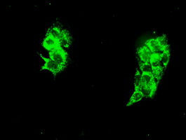 Anti-HSPA9 mouse monoclonal antibody immunofluorescent staining of COS7 cells transiently transfected by pCMV6-ENTRY HSPA9 .
