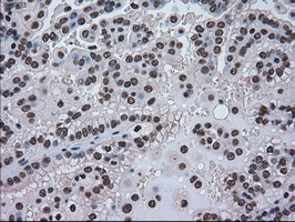 Immunohistochemical staining of paraffin-embedded Carcinoma of Human kidney tissue using anti-HSPA9 mouse monoclonal antibody. (Heat-induced epitope retrieval by 10mM citric buffer, pH6.0, 100°C for 10min, M02561-1)