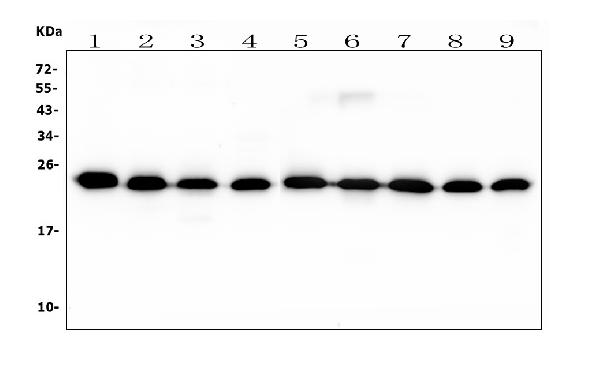 Lane 9: mouse RAW264.7 whole cell lysates.