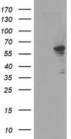 HEK293T cells were transfected with the pCMV6-ENTRY control (Left lane) or pCMV6-ENTRY FTCD (Right lane) cDNA for 48 hrs and lysed. Equivalent amounts of cell lysates (5 ug per lane) were separated by SDS-PAGE and immunoblotted with anti-FTCD.