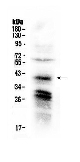 | (Boiling the paraffin sections in 10mM citrate buffer,pH6.0,or PH8.0 EDTA repair liquid for 20 mins is required for the staining of formalin/paraffin sections.) Optimal working dilutions must be determined by end user. | |