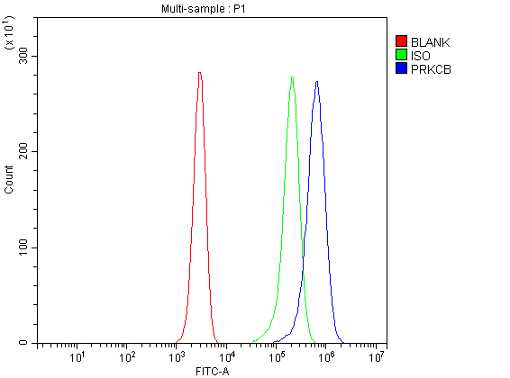 Flow Cytometry analysis of Jurkat cells using anti-PKC Beta/PRKCB antibody (PB0355).