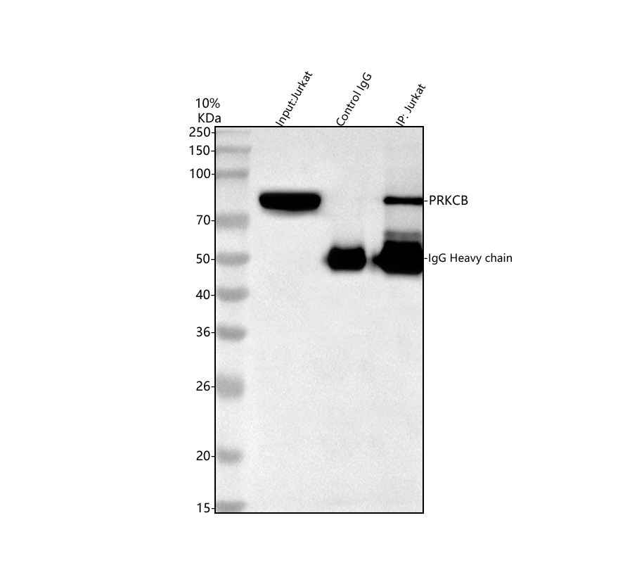 Lane 3: anti- PKC Beta/PRKCB antibody (2μg) + Jurkat whole cell lysate (500μg).
