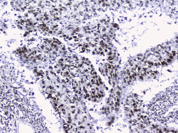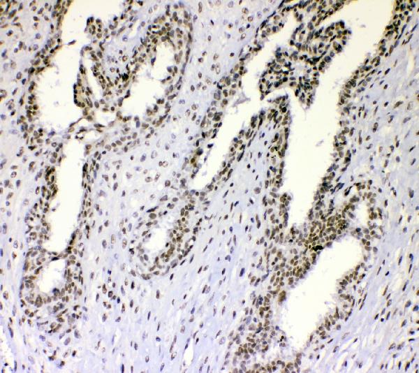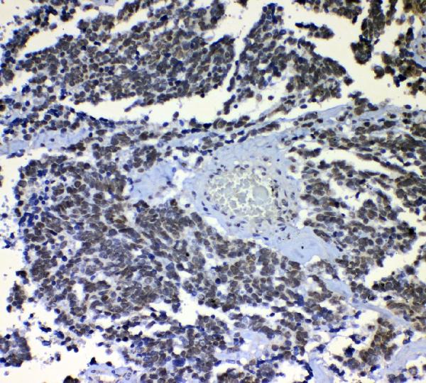 | (Boiling the paraffin sections in 10mM citrate buffer,pH6.0,or PH8.0 EDTA repair liquid for 20 mins is required for the staining of formalin/paraffin sections.) Optimal working dilutions must be determined by end user. | |