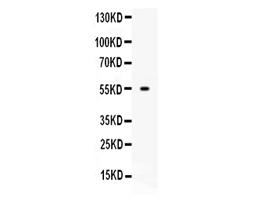 After electrophoresis, proteins were transferred to a membrane. Then the membrane was incubated with rabbit anti-WNT5A antigen affinity purified polyclonal antibody (PB9063) at a dilution of 1:1000 and probed with a goat anti-rabbit IgG-HRP secondary antibody (Catalog # BA1054). The signal is developed using ECL Plus Western Blotting Substrate (Catalog # AR1197). A specific band was detected for WNT5A at approximately 42,55 kDa. The expected band size for WNT5A is at 42 kDa.