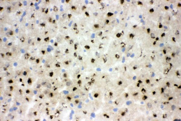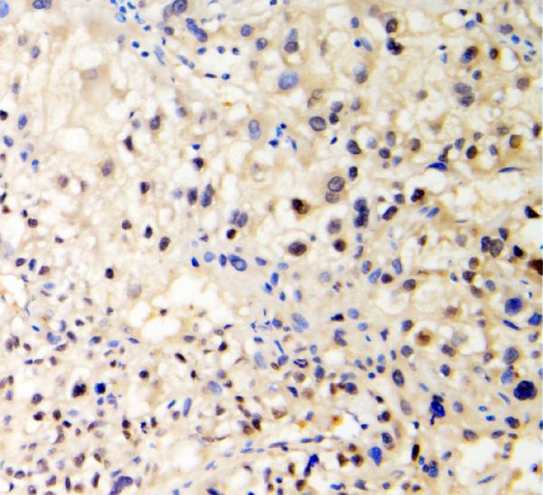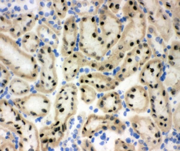 | (Boiling the paraffin sections in 10mM citrate buffer,pH6.0,or PH8.0 EDTA repair liquid for 20 mins is required for the staining of formalin/paraffin sections.) Optimal working dilutions must be determined by end user. | |