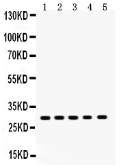After electrophoresis, proteins were transferred to a membrane. Then the membrane was incubated with rabbit anti-XBP1 antigen affinity purified polyclonal antibody (PB9463) at a dilution of 1:1000 and probed with a goat anti-rabbit IgG-HRP secondary antibody (Catalog # BA1054). The signal is developed using ECL Plus Western Blotting Substrate (Catalog # AR1197). A specific band was detected for XBP1 at approximately 29 kDa. The expected band size for XBP1 is at 29 kDa.