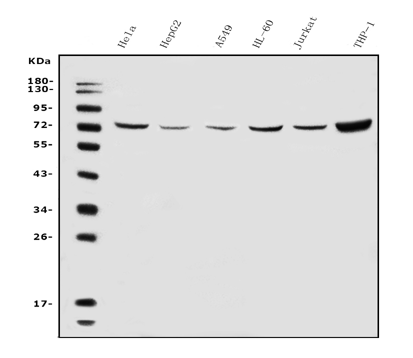 Lane 5: human HELA whole cell lysates,