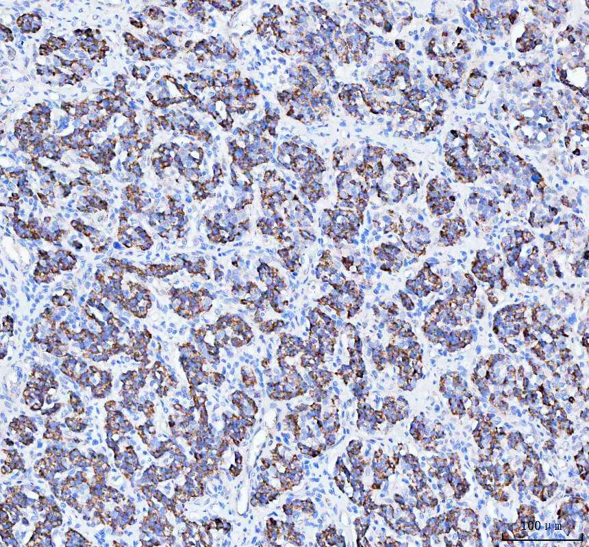 | (Boiling the paraffin sections in 10mM citrate buffer,pH6.0,or PH8.0 EDTA repair liquid for 20 mins is required for the staining of formalin/paraffin sections.) Optimal working dilutions must be determined by end user. | |