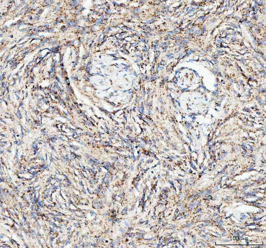 ATG7 was detected in a paraffin-embedded section of human meningioma tissue. The tissue section was developed using HRP Conjugated Rabbit IgG Super Vision Assay Kit (Catalog # SV0002) with DAB (Catalog # AR1027) as the chromogen.