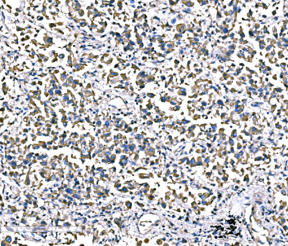 | (Boiling the paraffin sections in 10mM citrate buffer,pH6.0,or PH8.0 EDTA repair liquid for 20 mins is required for the staining of formalin/paraffin sections.) Optimal working dilutions must be determined by end user. | |