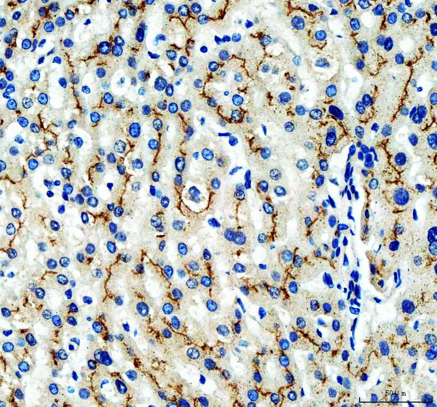 IHC analysis of ABCC2 using anti-ABCC2 antibody (A00974-1).